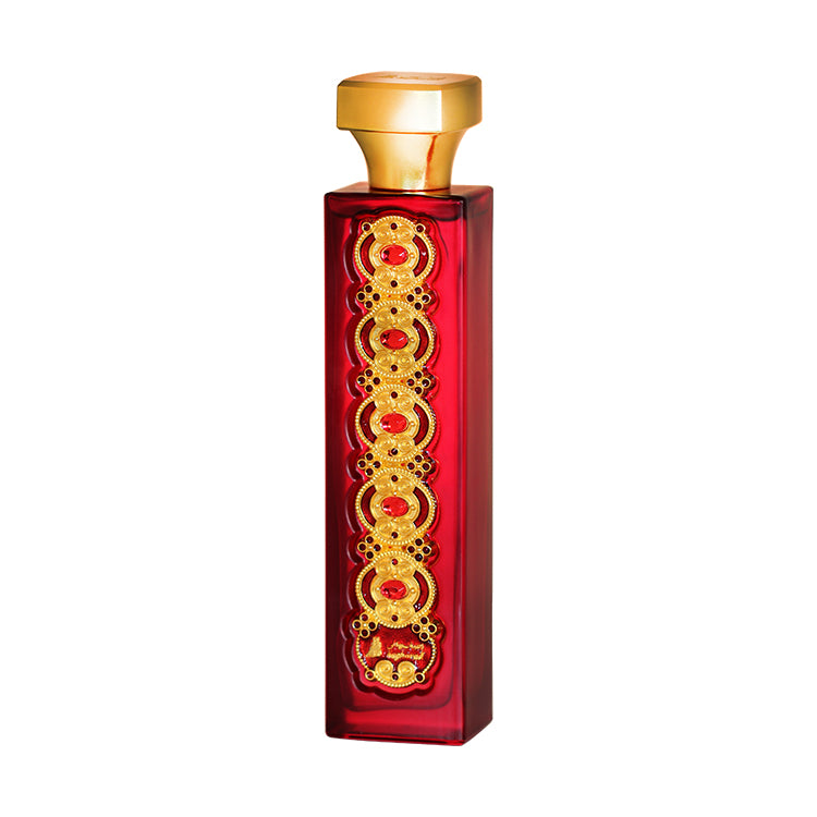 Samia Al Teeb perfume spray leads us to an enchanting and mystique journey for its fragrance of oriental floral ambery, a reminiscent of Arabian nights with topping notes of rose, saffron and red fruits. The middle and base notes are finely composed of sandalwood and extravagant oudh with a finishing touch of vanilla, amber and musk. Samia Al teeb is presented in a elegant red elongated bottle with perfume capacity of 100ml.