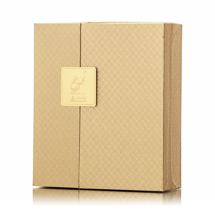 SHUMUKH Spray is made to empower women as its name embodies glory and highness. There is a pleasant transition of aroma from fruity-sweet to a mild spice. Its top notes whiffs off Bergamot, orange and Ginger accords, as it transits to a Woody floral heart note of Patchouli and Rose. The scent is notable to accentuate and leave an oriental fragrance formed by its base notes, Amber and Vanilla. Bottle reflects the name of the perfume in its golden case and diamond pattern, distinctively unique in character in a 100ml capacity.